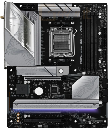 AM5, AMD B850, 4xDDR5, Max:5600MHz, Max:256GB, 3xPCIE16, 2xSATA3, RAID, 8xUSB, 5xUSB3.2, 1xUSB3.2C, HDMI, 7.1, SPDIF optikai kimenet, 2.5Gb/s LAN, WiFi, Bluetooth, 2xHyper M.2, 1xBlazing M.2, ATX