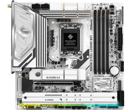 LGA1851, Intel B860, 4xDDR5, Max:5600MHz, Max:256GB, 1xPCIE16, 4xSATA3, RAID, 4xUSB3.1, 2xUSB3.2, 1xUSB4.0C, HDMI, DisplayPort, 7.1, SPDIF optikai kimenet, 2.5Gb/s LAN, WiFi, Bluetooth, 3xHyper M.2, 1xBlazing M.2, Micro-ATX, RGB, Gamer