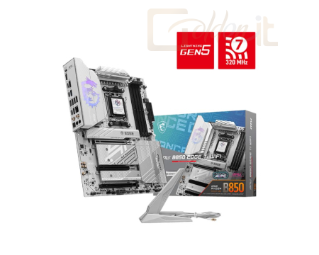 AM5, AMD B850, 4xDDR5, Max:5600MHz, Max:256GB, 3xPCIE16, 4xSATA3, RAID, 4xUSB, 3xUSB3.2, 3xUSB3.2C, HDMI, 7.1, SPDIF optikai kimenet, 5Gb/s LAN, WiFi, Bluetooth, 4xM.2, ATX