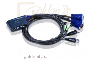 Kompakt KVM átkapcsoló, két számítógép egy konzolról történő felügyeletéhez. Beépítése és használata egyszerű, a beépített kábeleket csatlakoztatni kell a két számítógéphez, valamint a konzol egységeit (monitor, billentyűzet, egér, hangszórók) a KVM átkapcsolóhoz, és a készülék máris használható. Szoftver telepítése nem szükséges. A két gép között gyorsbillentyűvel lehet átkapcsolni és rendelkezésre áll az 'auto scan' funkció, mellyel folyamatosan felügyelhető a két számítógép. USB porttal felszerelt gépekkel és perifériákkal használható. A tápellátást a számítógépektől kapja. 1920 x 1440-es felbontásig használható, DDC, DDC2, DDC2B kompatibilis. A csatlakoztatott gépek menet közben is cserélhetők. Az eszköz a gépek audió jeleit is képes átkapcsolni. Az eszköz nem feltétlenül támogatja a Wireless billentyűzet és egér kombinációt.
