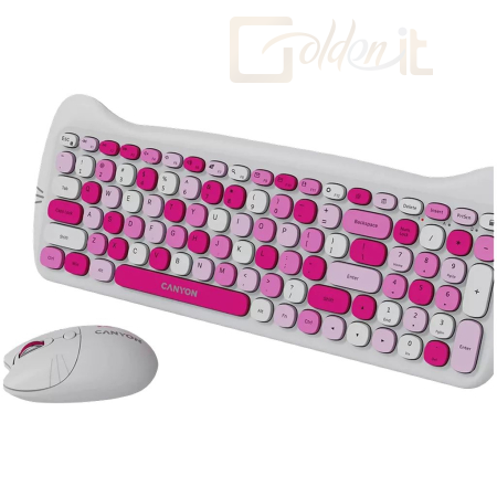Billentyűzet Canyon CNS-HSETW6PK-HU Wireless Keyboard Combo Kitty Edition Pink HU - CNS-HSETW6PK-HU