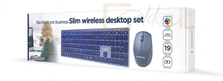 Billentyűzet Gembird Backlight Pro Business Slim wireless desktop set Black US - KBS-ECLIPSE-M500