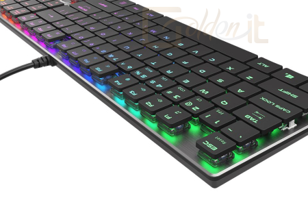 Billentyűzet, USB, Mechanikus switch, Blue switch, Grey, ENG, RGB, Gamer