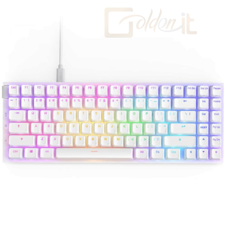 Billentyűzet, USB, Multimédia, Tenkeyless (TKL), Megvilágítás, Mechanikus switch, Purple switch, White, ENG, RGB, Gamer