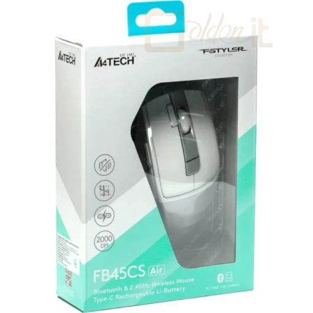 Egér A4-Tech Fstyler FB45CS Air2 Wireless Mouse Silver White - FB45CSAIR2-WH
