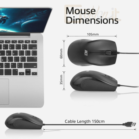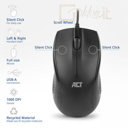Egér ACT AC5006 Wired Full-Size Optical Mouse Black - AC5006