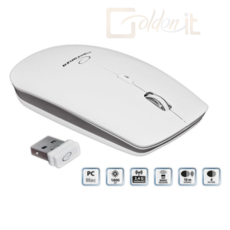 Vezeték nélküli, Wireless 2,4GHz, Optikai, 1600DPI, White