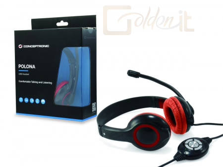 Fejhallgatók, mikrofonok Conceptronic CCHATSTARU2R Headset Black/Red - CCHATSTARU2R