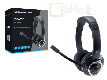 Fejhallgatók, mikrofonok Conceptronic POLONA01B Headset Black - POLONA01B