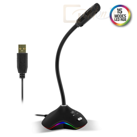 Mikrofon, USB, Kábel:1,5m, Mikrofon, Black, RGB