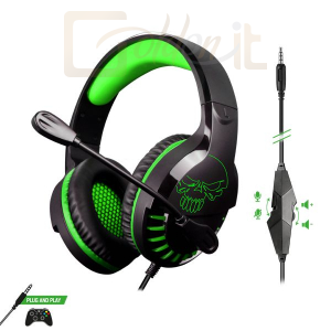 Headset, 2.0, 3.5mm, Kábel:1m, 21Ohm, 20Hz-20kHz, Mikrofon, Black/Green, Volume Control