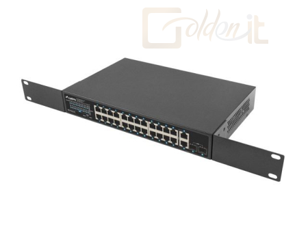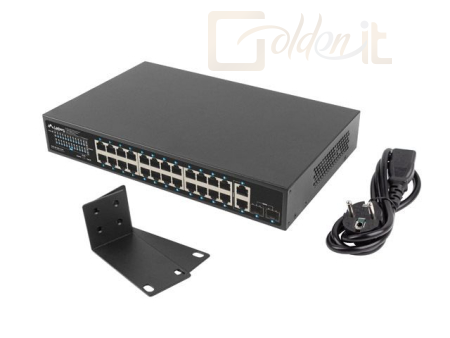 26xLAN port, LAN 10/100/1000 Mbps, 26xGigabit LAN, PoE port 24, PoE osztály PoE+, SFP port 2, Fémház, Uplink 1 Gbps