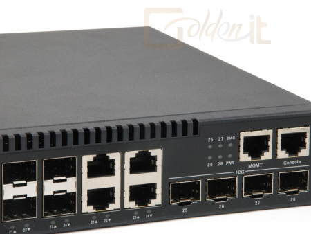 28xport, 24xGigabit, 4x10GB/s, Menedzselhető, Rack, MenedzselhetőségMenedzselhető, Ethernet10/100 Mbps, SFP port28, Uplink10 Gbps