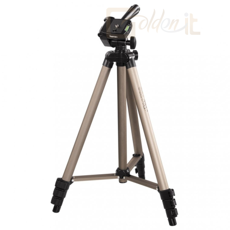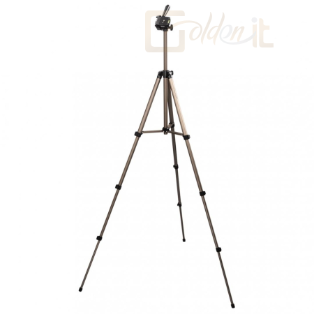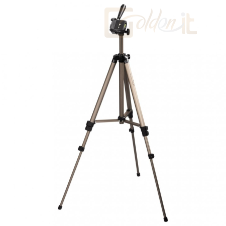 fotó-video állvány három irányban mozgatható fejjel középoszlop magassága állítható csúszásgátló gumi lábak beépített vízszintező 19,8 mm-es profilvastagság magasság összecsukott állapotban: 42,5 cm teljes magasság: 125 cm súly: 620 gramm tartozék hordtáska