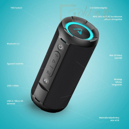 Zenék, podcastok, filmek és mindegyik más eszközön van? Teljesen klassz, a legújabb Bluetooth 5.3-on keresztül, amely automatikusan csatlakozik az eszközhöz, akár 15 méterről is csatlakozhat vezeték nélkül, bármire, amire szüksége van. A hangszóró tehát támogatja a microSD, USB-A és AUX csatlakozásokat. A támogatott formátumok széles skálája (MP3, WAV, FLAC) is elérhető. A hűvös LED-es háttérvilágítás fokozza a hallgatási élményt.