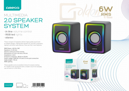 2.0, 6W, 3,5mm jack, 180Hz-20KHzHz, Black, RGB, Gamer
