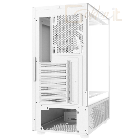 ATX, White, 2x3,5", 1x2,5", 1xUSB3.2, 1xUSB Type-C, Audio, Táp nélkül, 460x359x210mm, Ventilátor:5x12cm, Tempered glass window, RGB, Gamer