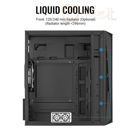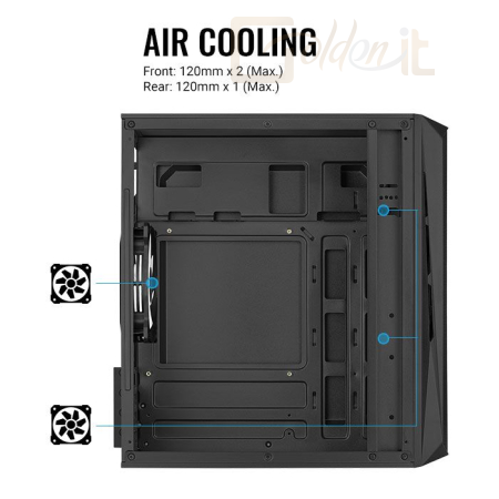 microATX, Black, 1x3,5", 2x2,5", 1xUSB2.0, 1xUSB3.0, Audio, Táp nélkül, 183 x 350 x 290 mm , Ventillátor:3x12cm, Window