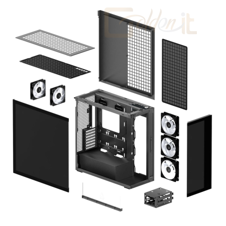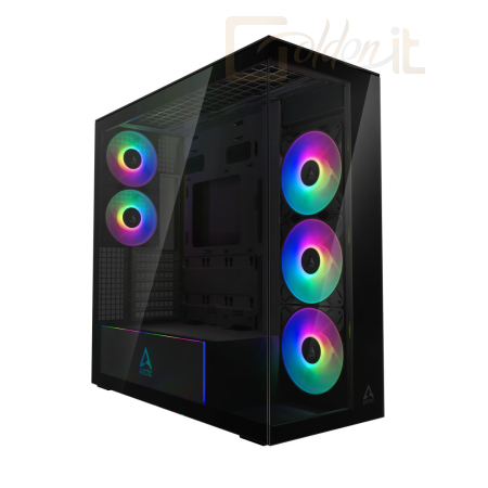 E-ATX, Black, 2x3,5", 3x2,5", 2xUSB3.2, 1xUSB Type-C, Audio, Táp nélkül, 529x529x231mm, Ventilátor:3x14cm, Tempered glass window, RGB, Gamer