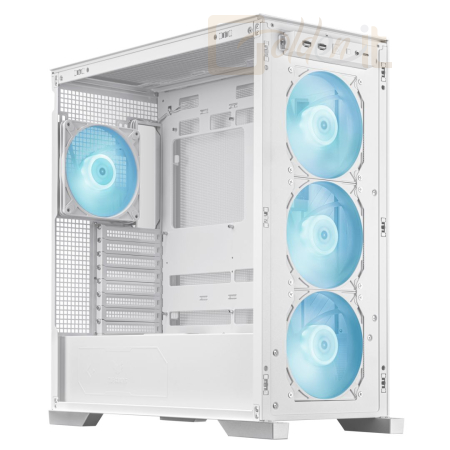 E-ATX, White, 2x3,5", 4x2,5", 2xUSB3.2, 1xUSB Type-C, Audio, Táp nélkül, 235x520x485mm, Ventilátor:4x14cm, Tempered glass window, RGB, Gamer