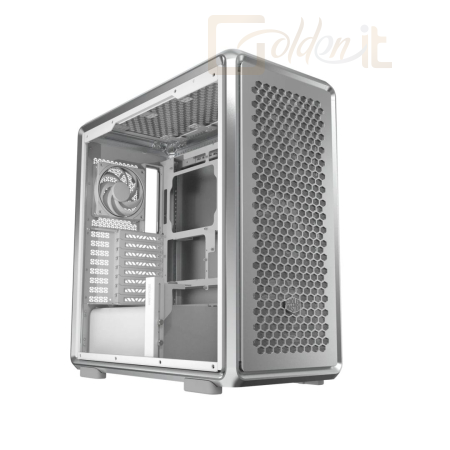 E-ATX, Silver, 2x3,5", 3x2,5", 2xUSB3.2, 1xUSB Type-C, Audio, Táp nélkül, 531x261x544mm, Ventilátor:3x14cm, 1x12cm, Tempered glass window