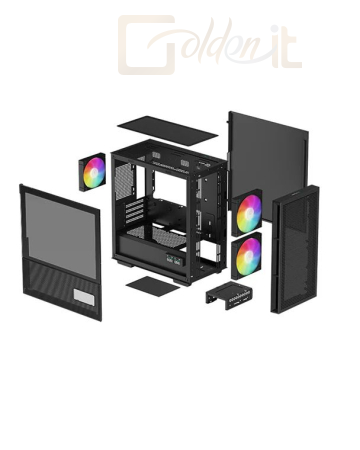 microATX, Black, 2x3,5", 3x2,5", 1xUSB3.0, 1xUSB Type-C, Audio, Táp nélkül, 428x215x431mm, Ventilátor:2x14cm, 1x12cm, Tempered glass window, RGB, Gamer