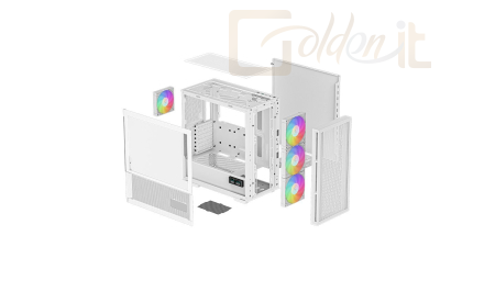 ATX, White, 2x3,5", 2x2,5", 1xUSB3.0, 1xUSB Type-C, Audio, Táp nélkül, 458×230×471mm, Ventilátor:3x14, 12cm, Tempered glass window, RGB, Gamer