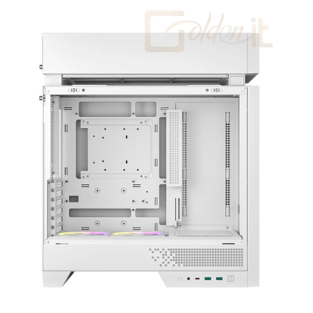 ATX, White, 2x3,5", 1x2,5", 2xUSB3.0, 1xUSB Type-C, Audio, Táp nélkül, 534x458x235mm, Ventilátor:2x12cm, Tempered glass window, RGB, Gamer