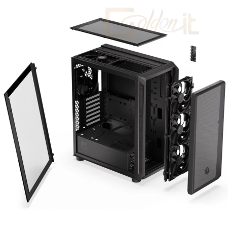 ATX, Black, 1x3,5", 6x2,5", 2xUSB2.0, 1xUSB Type-C, Audio, Táp nélkül, 486x228x429mm, Ventilátor:5x14cm, Tempered glass window