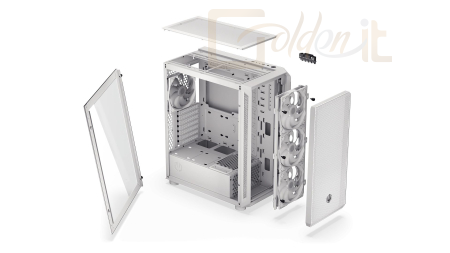 ATX, White, 1x3,5", 6x2,5", 2xUSB2.0, 1xUSB Type-C, Audio, Táp nélkül, 486x228x429mm, Ventilátor:4x14cm, Tempered glass window, RGB, Gamer