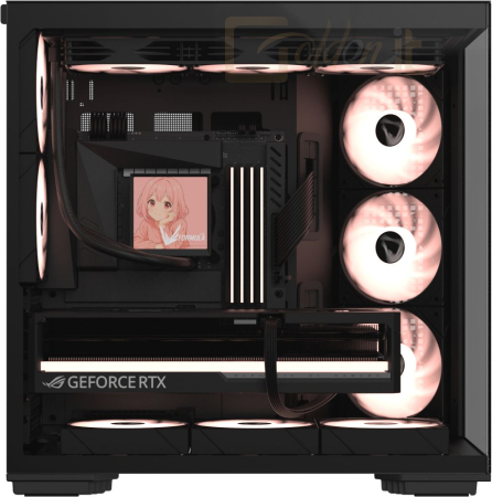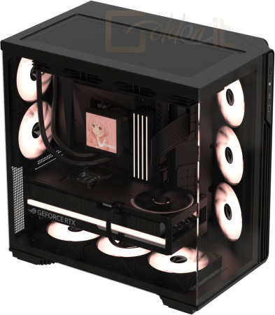 E-ATX, Black, 3x3,5", 2x2,5", 1xUSB3.0, 1xUSB Type-C, Audio, Táp nélkül, 458x453x290mm, Ventilátor:5x12cm, Tempered glass window, RGB, Gamer