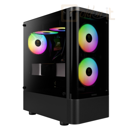 ATX, Black, 2x3,5", 2x2,5", 2xUSB2.0, 1xUSB3.0, Audio, Táp nélkül, Ventilátor:3x12cm, Tempered glass window, RGB, Gamer