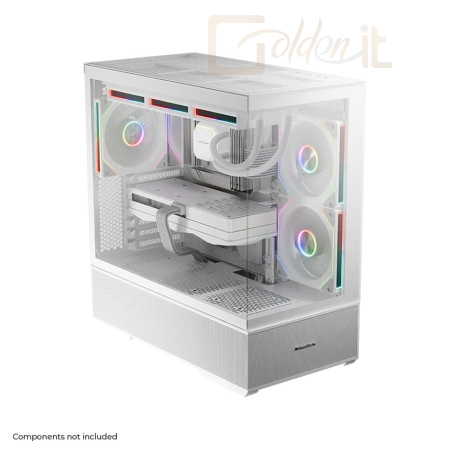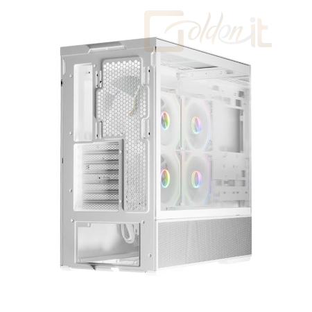 ATX, White, 2x3,5", 2x2,5", 2xUSB3.2, 1xUSB Type-C, Audio, Táp nélkül, 472x455x235mm, Ventilátor:2x14cm, 1x12cm, Tempered glass window, RGB, Gamer