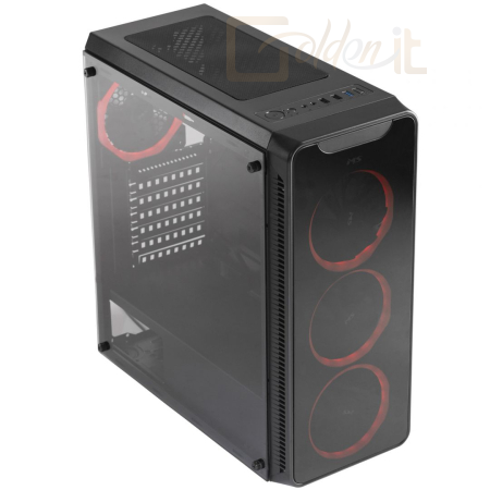 ATX, Black, 2x3,5", 2x2,5", 2xUSB2.0, 1xUSB3.0, Audio, Táp nélkül, 420x198x440mm, Tempered glass window
