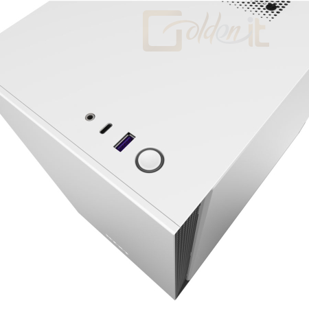 ITX, Matte White, 1x3,5", 4x2,5", 1xUSB3.1, 1xUSB Type-C, Audio, Táp nélkül, 210x349x372mm , Ventillátor:2x12cm, Tempered Glass