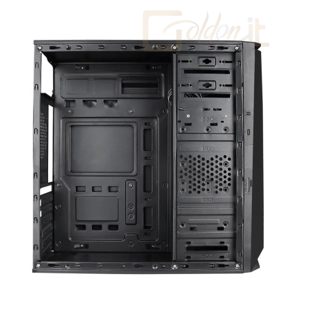 ATX, Black, 1x5,25", 1x3,5", 2x2,5", 2xUSB2.0, 2xUSB3.0, Audio, Táp nélkül, 410x370x176mm