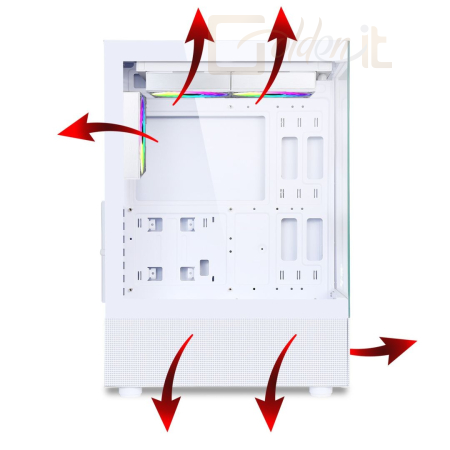 ATX, White, 1x3,5", 2x2,5", 2xUSB2.0, 1xUSB3.0, Audio, Táp nélkül, 400x269x531mm, Ventilátor:3x12cm, Window, RGB, Gamer