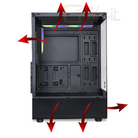 ATX, Black, 1x3,5", 2x2,5", 2xUSB2.0, 1xUSB3.0, Audio, Táp nélkül, 400x269x531mm, Ventilátor:3x12cm, Window, RGB, Gamer