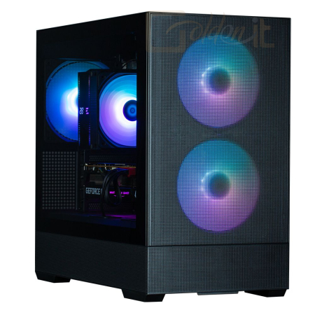 microATX, Black, 1x3,5", 3x2,5", 1xUSB3.0, 1xUSB Type-C, Audio, Táp nélkül, 452x420x235mm, Ventilátor:3x14cm, Tempered glass window, RGB, Gamer