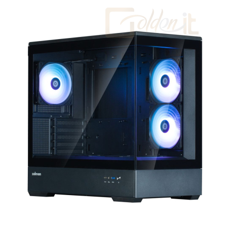 microATX, Black, 1x3,5", 2x2,5", 1xUSB3.0, 1xUSB Type-C, Audio, Táp nélkül, 453x235x429mm, Ventilátor:3x12cm, Tempered glass window