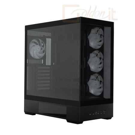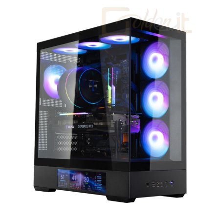 ATX, Black, 2x3,5", 1x2,5", 2xUSB3.0, 1xUSB Type-C, Audio, Táp nélkül, 492x452x235mm, Ventilátor:4x12cm, Tempered glass window, RGB, Gamer