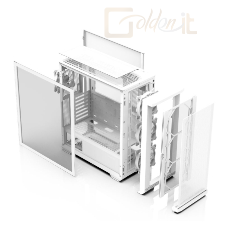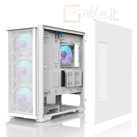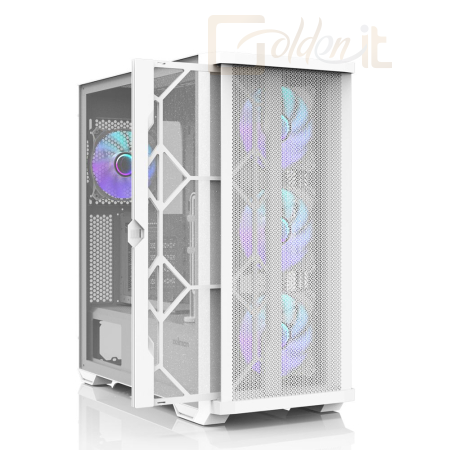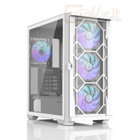 ATX, White, 2x3,5", 2x2,5", 2xUSB3.0, 1xUSB Type-C, Audio, Táp nélkül, 481x220x488mm, Ventilátor:4x12cm, Tempered glass window, RGB, Gamer