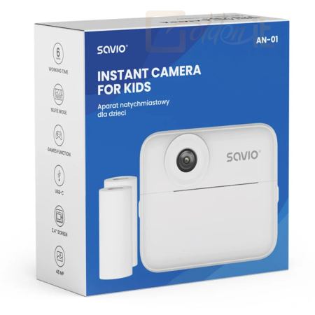 A Savio AN-01 instant fényképezőgép a szórakozás és a kreativitás tökéletes kombinációja. Lehetővé teszi a gyermekek számára, hogy ne csak fényképeket készítsenek és videókat rögzítsenek, hanem a képeket azonnal kinyomtassák hőpapírra, tinta nélkül. Egyszerű kezelőfelületével, színes képernyőjével és beépített játékaival a gyerekek fejleszthetik fantáziájukat, és bárhol - otthon, nyaraláson vagy családi összejöveteleken - élvezhetik az emlékek megörökítését.