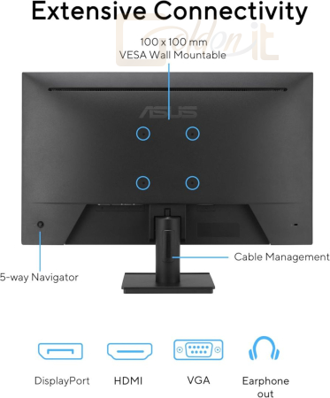 16:9, 1920x1080, 23,8", Full HD, LED, IPS, 120Hz, 1ms, 1500:1, 300cd/m2, VGA, DP, 1xHDMI, Hangszóró, Black