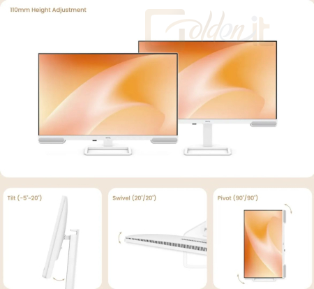 16:9, 3840x2160, 27", 4K, LED, IPS, 60Hz, 5ms, 3000:1, 350cd/m2, 3xHDMI, 3xUSB3.2, 2xUSB-C, Hangszóró, White, Állítható magasság, Pivot