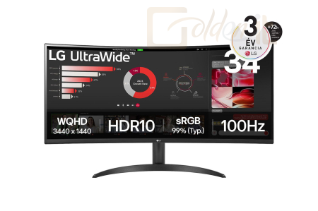 21:9, 3440x1440, 34", UWQHD, LED, VA, 100Hz, 5ms, 3000:1, 300cd/m2, Ívelt, DP, 2xHDMI, FreeSync, Black