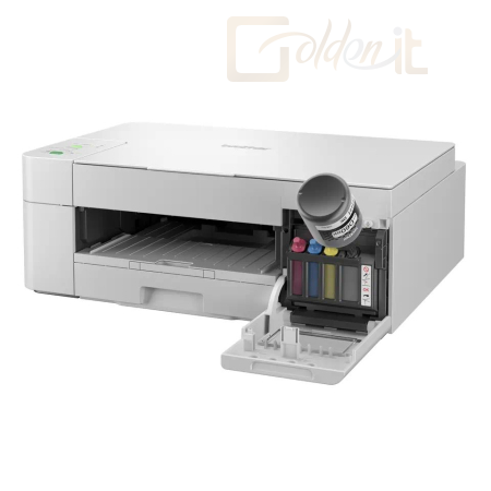 A DCP-T426W dobozában 1x fekete tintatartály (7500 oldalas töltet), 1x cián tintatartály (5000), 1x magenta tintatartály (5000) és 1x sárga tintatartály (5000) található. A tintatartályoknak köszönhetően gyorsan és könnyedén beüzemelheti a készüléket és alacsonyan tarthatja az oldalköltséget.