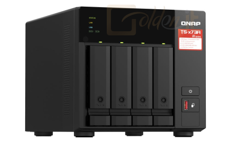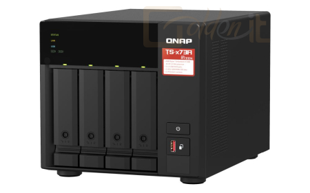A készülék egy AMD Ryzen™ V1000 sorozatú V1500B négymagos processzort használ, amely kiváló teljesítményt nyújt az akár 4 magos/8 szálas kialakításának, és a 2,2 Ghz-es Turbo Core órajelének köszönhetően. A TS-473A két 2,5 GbE RJ45 porttal és két PCIe Gen 3 bővítőhellyel rendelkezik az akár 5 GbE/10 GbE sebességű hálózatok rugalmas telepítéséhez. A két M.2 NVMe SSD bővítőhely segítségével a felhasználók engedélyezhetik a Qtier technológiát és az SSD gyorsítótárazást az optimális tárhelyhasználat biztosításához. A TS-473A egyaránt támogatja a QTS és a QuTS hero rendszereket, így a felhasználók igényeik szerint átválthatják a NAS operációs rendszerét a számukra megfelelő megoldásra.