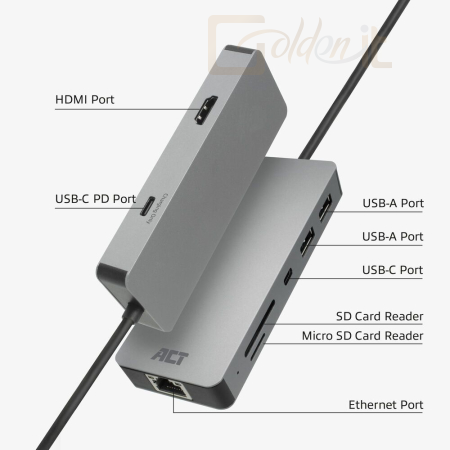 Notebook kiegészitők ACT AC7092 USB-C 4K docking station - AC7092