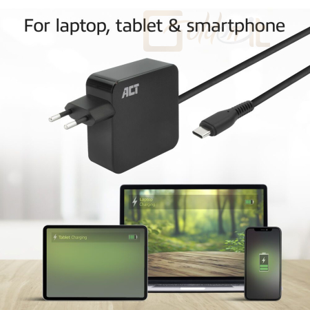 Csatlakoztassa Android okostelefonját/tabletjét és legújabb generációs iPhone/iPadjét az ACT 65W USB-C fali töltőhöz, hogy töltse mobileszközét.